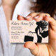 Concierge de shopping et conseiller de mode carte de visite avec un motif à pois design et tendance et modèle à la mode tenant des sacs de shopping dans l'arrière - plan. Conçu pour un concierge personnel haut de gamme qui assiste les cadres occupés dans leurs courses et leur horaire quotidien.