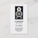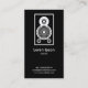 Un modèle de carte de visite élégant et attrayant avec comme motif d'enceintes audio captivant l'attention. Détails de l'entreprise principale sur le devant, avec nom et contact personnel sur le dos, avec le même motif et le même style.