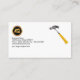 Au verso, vous avez un logo d'or de faux en haut à gauche au faisant le coin de la carte. Ceci est suivi des détails de contact et d'une option de slogan. Vers le coin supérieur droit, il y a une conception incluse d'un marteau.