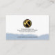 Un mur en brique grise avec une zone découpée abrite votre nom prestigieux et votre titre professionnel. Juste en dessous, dans le mur en plâtre bleu, vous trouverez un logo de marteau doré que vous pouvez utiliser, à côté du nom d'entreprise et de ses coordonnées.