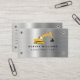 A modern design with metal background and construction truck with your own QR Code. A minimalist personalized business card for both men and women who have a flare for style. A simple and professional way to introduce your business. Personalize your details to create your own unique business card. Ideal business card for construction workers, industrial, metal recycling businesses.