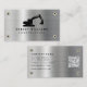 A modern design with metal background and construction truck with your own QR Code. A minimalist personalized business card for both men and women who have a flare for style. A simple and professional way to introduce your business. Personalize your details to create your own unique business card. Ideal business card for construction workers, industrial, metal recycling businesses.
