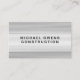 Carte de visite de construction professionnelle moderne. Personnalisez avec votre nom d'entreprise et les détails pour un carte de visite personnalisé pour constructeur, handyman, charpentier et plus. Dispose d'un design élégant avec un arrière - plan en métal argenté.