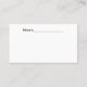 Carte de visite, taille : États-Unis : 8,9 cm x 5,1 cm, papier : Standard Semi-brillant, coins : Carré