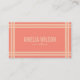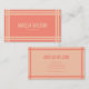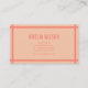 Ce carte de visite moderne aux couleurs coralliennes et pêche présente des bordures audacieuses. Idéal pour les consultants, les écrivains, les architectes d'intérieur, les pigistes, les photographes, etc. ou pour n'importe qui qui veut un design élégant et audacieux qui se démarque. Il est facile de personnaliser ; vous pouvez facilement remplacer le texte de l'espace réservé pour ajouter vos propres informations. Pour plus d'options comme changer la police et sa taille, cliquez sur le bouton "Customiser". *Veuillez noter que le filigrane Zazzle qui apparaît dans l'aperçu du zoom n'apparaîtra PAS sur le produit imprimé final © Rosewood et Citrus