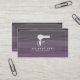Un carte de visite de l'industrie des cheveux avec un design arrière - plan à l'ombre violette sur l'avant et l'arrière. L'avant présente une illustration blanche d'un sèche-cheveux. Personnalisez le texte à l'avant et à l'arrière avec votre nom et vos coordonnées.