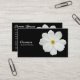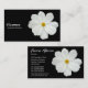 Un carte de visite avec un motif photo Cosmos blanc. Nom d'entreprise etc sur le devant avec d'autres détails sur le verso avec le même motif et le même style.