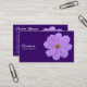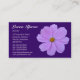 Un carte de visite avec un motif photo Cosmos violet. Nom d'entreprise etc sur le devant avec d'autres détails sur le verso avec le même motif et le même style.