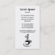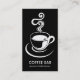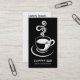 Un carte de visite attrayant avec une tasse de café chaude. Nom de l'entreprise et type d'entreprise sur le devant avec nom et autres coordonnées sur le dos avec une version plus petite du motif de la tasse de café avant. Dans cette version, le motif avant est blanc sur le noir ou une couleur plus foncée et noir sur le blanc ou un ton clair sur le dos.