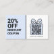 Carte De Visite Coupon rabais QR Code bleu Marketing