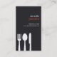 Illustration graphique de fourche, cuillère et couteau coulent du bord de ce carte de visite unique. Idéal pour les restaurateurs, les cuisiniers ou les amateurs de cuisine. © 1201AM DESIGNS