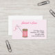 Un carte de visite pour l'ouvrière couturière, le tailleur ou la personne de métiers avec la bobine du fil et de l'aiguille roses sur pâle - arrière - plan floral rose.