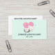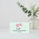 Un carte de visite avec une adorable illustration graphique. Un chaton blanc avec une jolie image empreinte de patte sur sa fourrure. Dormir tranquillement. Un grand coeur rose derrière elle et quelques petites étoiles aussi. Arrière - plan vert menthe.