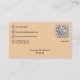 La mise en place de votre boulangerie ou de votre pâtisserie dans le but de la faire connaître pour ce qu'elle offre à vos clients peut être difficile si vous n'envisagez pas une stratégie de marketing efficace pour votre entreprise. L'un des moyens les plus populaires de promouvoir votre identité de marque est de fournir une carte professionnelle et essentielle qui a un design attrayant et des informations pertinentes sur votre entreprise. Cette modèle personnalisée aux tons chauds et terreux, dans les tons beige crème, marron chocolat riche, et une touche de couleur rouge, donne une impression plus sophistiquée à cette palette de couleurs. L'art motif de la cuisine ou de la cuisson des ustensiles et des styles de police qui y sont incorporés donne une ambiance joyeuse et mignonne qui pourrait attirer visuellement plus d'yeux. Il a une icône de logo qui met en évidence les produits que vous vendez. Vous pouvez également customiser les détails du texte et le code QR avec la façon dont vous voulez qu'il s'affiche.