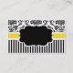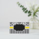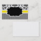 Carte de visite élégamment présenté ayant un arrière - plan damassé noir et blanc avec une bande jaune. Un étiquette au centre est disponible pour le texte.