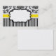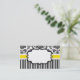 Carte de visite élégamment présenté ayant un arrière - plan damassé noir et blanc avec une bande jaune. Un étiquette au centre est disponible pour le texte.