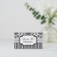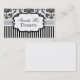 Carte de visite élégamment présenté ayant un arrière - plan damassé noir et blanc avec une bande bleue glace. Un étiquette au centre est disponible pour le texte.