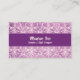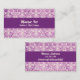 Vintage élégant modèle magenta damask carte de visite personnalisé avec une typographie rose douce, accentué avec un ruban violet foncé comme arrière - plan pour le contraste. Police complète et ronde pour un design rétro et un peu plus ludique et moderne, créé pour la marque design qui aime l'élégance des motifs damassés. Mettez à jour vos informations commerciales, votre ligne de balise et vos coordonnées.