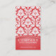 Amusement et carte de visite chic en rouge et le blanc avec un motif unique de damassé et un bon nombre d'espace pour votre information d'affaires