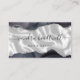 This elegant modern appointment card features an image of white silk, framed on the top and bottom by dark gray watercolor agate borders trimmed with silver faux glitter. Personalize it with your name in off-black handwriting-style script and your business information in sans serif font. On the reverse, the words "your next appointment" appear in off-black handwriting script on a pale gray background, along with spaces for the date and time. Edit the italic text at the bottom with additional policies or information for your clients or customers.
