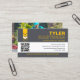 Yellow and dark gray double sided business card, perfect for a contractor, landscaper or similar, with your name in big letters in eye catching yellow against a cool dark gray. Add your custom QR code on one side and a photo of yourself or the services you offer on the other.