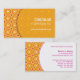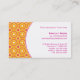 Une grille des cercles concentriques d'orange, roses et blancs d'or fait un motif frappant sur ce carte de visite qui est sûr d'obtenir l'attention. Un jaune orange, forme circulaire légèrement transparente tient la raison sociale et la préférence principale de contact. L'inverse indique le motif du côté gauche pour montrer toute l'information de contact contre le blanc du côté droit. Une manière créative de favoriser un marketing et des affaires de communications, une consultation, dessinateur d'intérieurs ou toute profession créative. Disponible dans des couleurs alternatives avec les produits assortis.