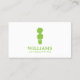 Un plante en pots double topiaire se trouve au-dessus de votre nom ou nom d'entreprise sur ce modèle de carte de visite moderne pour les entreprises d'aménagement paysager et d'entretien de pelouse. © 1201AM CREATIVE