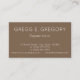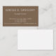 Ce design carte de visite de base comporte un nom, une profession et des informations de contact qui peuvent être customisés. Il présente un arrière - plan de couleur marron et un texte blanc. De tels cartes de visite pourraient être utilisés par un professionnel comme un investisseur ou un planificateur financier.