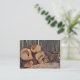Un carte de visite montre la pile de bois de construction au milieu d'une forêt.