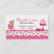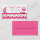 Joli carte de visite de boulangerie réalisé avec des illustrations graphiques d'un bord de paille blanc, rose blanc, vert et blanc, à la pointe de la carte. Des graphiques représentant de jolis cupcakes, du brownie et un pot de biscuits décorent cet adorable carte de visite de boulangerie. Le texte en rose et noir est entièrement personnalisable pour répondre à vos besoins professionnels. Personnalisez le texte pour votre entreprise de boulangerie. Idéal aussi pour les boulangers à la maison.
