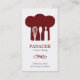 Un graphique du casquette d'un chef de Bourgogne avec des outils de cuisine créant l'espace négatif en dedans domine ce carte de visite. Assez souple pour travailler pour une société de restauration, un chef personnel ou un boulanger. Le graphique est répété sur l'inverse comme filigrane contre Bourgogne solide pour compenser votre information de contact. Disponible dans des couleurs alternatives avec les produits assortis.