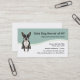Customisez ce modèle de carte de visite de chenil de chien conçu avec un graphique mignon de chien de Boston Terrier, une conception moderne et des modèles des textes que vous pouvez customiser en ligne. Créé comme carte de visite pour des établissements de soins de canicule, certains dont également poursuivez le toilettage.