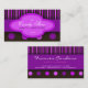 © Sunny Mars Designs. Cartes de visite de confiserie Pois - Ce modèle de carte de visite rose, violet et brun foncé ou rayé et pois de polka est entièrement personnalisable. Personnalisez-le en y ajoutant votre propre nom et les détails de votre magasin. Parfait pour les gérants et propriétaires de magasins de bonbons et de boulangeries qui vendent des confiseries.