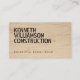 Votre nom ou nom d'entreprise est affiché dans une police de style pochoir en gras sur une image d'arrière - plan en contreplaqué d'érable sur ce modèle de carte de visite de construction ou de constructeur. L'esthétique est portée sur le dos de la carte. © 1201AM CREATIVE