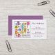 Grand carte de visite pour toute professeur, tuteur, fournisseur de garde, babysitter ou professionnel élémentaire ou préscolaire de soins des enfants. L'illustration originale de l'alphabet et des nombres fait une déclaration merveilleuse aux nuances d'amusement de la sarcelle d'hiver, de l'orange, du vert de chaux, du rose, de l'orange et du pourpre. Customisez le texte sur l'avant et de nouveau au costume vos besoins.
