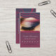 Ce carte de visite élégant élégant de maquilleur/cosmetologist a un arrière - plan pourpre et violet fané de prune avec une photographie d'un oeil qui a le revêtement de fard à paupières, de mascara et d'oeil professionnellement appliqué. Au dessus, il y a une conception de trois vagues. Au fond, vous pouvez facilement personnaliser ceci avec un nom et une profession. Au-dessous du ce est une CONCEPTION de bijou de diamant de FAUX qui a un bon nombre d'étincelles. Au fond, vous pouvez customiser l'adresse de site Web. Sur le postérieur, il y a la même conception de bijou de diamant de FAUX avec une conception rose fuchsia de remous de flourish. Vous pouvez facilement customiser la raison sociale, l'adresse, les numéros de téléphone et l'adresse email. Ce carte de visite est parfait pour composent des artistes ou des cosmetologists.
