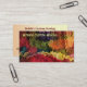 Ce carte de visite annonce des affaires de couture faites sur commande qui se spécialisent en mariages, robe faisant, changements, réparation et décor à la maison. Les caractéristiques de conception colorées de beaux-arts une image d'un motif abstrait contemporain de tissu dans des couleurs psychédéliques onduleuses d'arc-en-ciel de rose, de rouge, de jaune, d'orange, de vert, de bleu, de brun, de mauve, pourpre et turquoise qui ressemble à la palette d'un peintre. Le verso a tout le texte pertinent qui peut être customisé pour adapter à vos besoins.