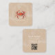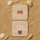 Carte de visite minimaliste avec illustration de crabe aquarellé à la main sur un arrière - plan beige sablonneux. Parfait pour les commerces côtiers, les restaurants de fruits de mer, les boutiques de plage ou les studios créatifs à la recherche d'un thème nautique unique. Le design allie élégance et ambiance balnéaire avec espace pour le nom, les coordonnées et le code QR à l'arrière.