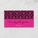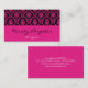 Conception de carte de visite élégante avec la conception rose et noire de damassé. Cette carte est prête pour la personnalisation avec votre information d'affaires. Tout le texte peut être modifié - changez le style, couleurs, tailles, ajoutez ou enlevez les gisements des textes pour adapter à vos besoins. Si vous avez besoin de n'importe quelle aide svp envoyer Kirsty sur kirsty_pargeter@yahoo.co.uk