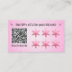 Carte de fidélité avec un endroit pour timbrer ou perforer trou et un code QR à un lien de multiples liens ou à un. Site de réservation Peut être utilisé pour les ongles, cils, cheveux ou tout esthéticien Girly simple et goth grunge moderne