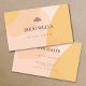 Carte de visite avec un motif boho aux formes abstraites se chevauchant dans les tons rose, jaune et beige. Toute votre entreprise a sa place ainsi que votre logo.