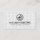 Le carte de visite de l'entrepreneur électrique dispose d'une icône de prise électrique sur un arrière - plan d'icônes électriques faibles. Idéal pour l'électricité, l'électricité, l'entrepreneur, l'électricité, l'entrepreneur, l'homme à main, la réparation de maison, la réparation de maison.