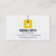 Un carte de visite avec une icône d'ampoule suspendue au-dessus d'un carré jaune. Palette de couleurs noir, blanc et jaune. Parfait pour les électriciens et ceux qui fournissent des services de câblage électrique et d'installation d'éclairage. Personnalisez vos informations professionnelles dans les modèles texte faciles à lire fournis.