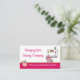 Tarjeta de personalizado de costura hecha en blanco, con una franja rosada, en la parte inferior. En la esquina superior derecha hay una máquina de coser de doodle caprichosa y un cojín de alfiler en la parte inferior izquierda. Personalice todos los campos de texto para sus necesidades empresariales. Elige el material de la tarjeta que prefieras con este diseño.