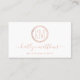 Ces cartes de visite sont parfaits pour toutes les affaires, des coiffeurs & maquilleurs aux événements & wedding planners. Le design présente des cercles abstraits chics en effet de feuille d'or rose avec monogramme et une écriture manuscrite correspondante. Personnalisez facilement ces cartes en changeant le libellé du modèle pour le rendre unique à vous et à votre entreprise.