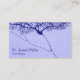 Une carte de visite bleue avec un dessin détaillé et complexe d'un neurone, recommandée pour un neurologue ou un neurochirurgien.