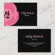 Un carte de visite avec un arrière - plan noir sur l'avant et un dos modernes et élégants. L'avant comporte l'image d'une tulipe de roses indien jetant un coup d'oeil de l'aile gauche. Personnalisez avec votre nom en manuscrit rose et votre titre dans la police blanche de lettre noire à la droite de la tulipe. Personnalisez le bord opposé avec votre information de contact.