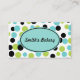 Un polka à point d'olive et turquoise décore ce carte de visite de style rétro. Customisez ce carte de visite pour répondre à vos besoins. Le design est de l'art original. Utilisez ce carte de visite professionnel pour une boulangerie, un salon, etc...