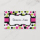 Des pois rose vif, chaux et noirs décorent ce carte de visite élégant. Customisez les informations sur ce carte de visite selon vos besoins, ajoutez ou supprimez des informations, changez le style de police, la taille de police, etc...Le design est de l'art original. Utilisez ce carte de visite pour un spa, salon, petite entreprise, décoration maison, planificateur d'événements, boulangerie, pâtisserie, gourmet, chocolats, boutique, garderie, garderie, garderie, bonbons, glaces, etc......