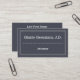 Ce design carte de visite propre, professionnel et élégant est composé d'un arrière - plan gris foncé, d'une bordure à deux lignes avec une ligne pointillée entre les deux et d'une rangée de formes diamant. Il peut être utilisé par un professionnel tel qu'un avocat, un parajuriste, un avocat ou un avocat. Le nom, la profession et les coordonnées peuvent être personnalisés.